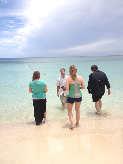 Our church which meets at the Infinity Bay conference room, has continued to attract more locals who want to grow in the Word. We are so thankful to see God at work. Two young ladies who are here working with Ms.Peggy's Clinic were baptized two weeks ago after the service. The baptism was out in the ocean on a very busy beach and (can't tell from pics above but) was witnessed by dozens of vacationers and locals. We pray that God planted seeds in many hearts that day.